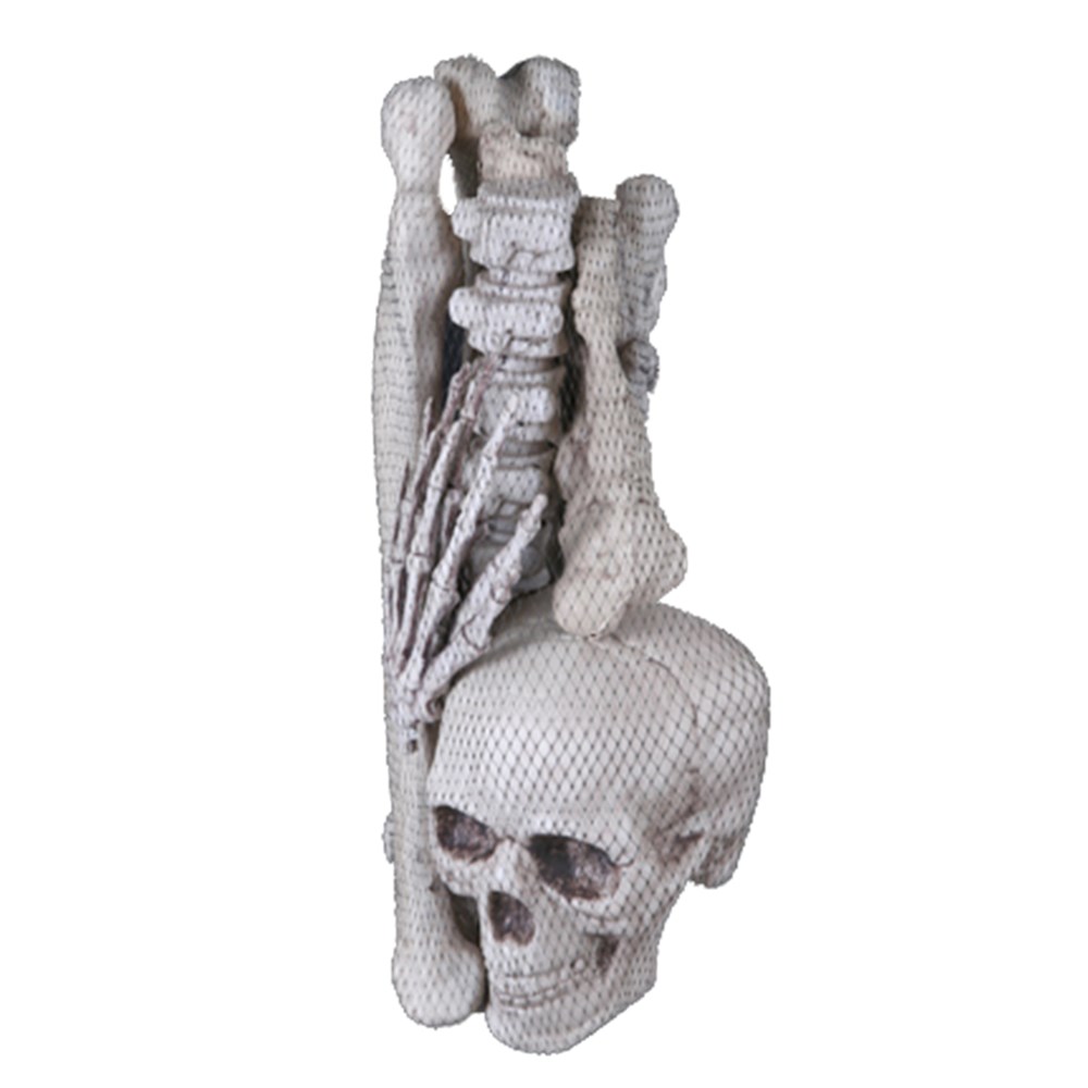 Set kocakash mund të varet ose të vendosen në një qoshe për një efekt dramatik. paketimi ne rrjetë u lejon të gjithëve te shohin skeletin e kockat brenda. Ky dekorim me kocka gjithashtu jane ideal për shtëpitë e përhumbura.