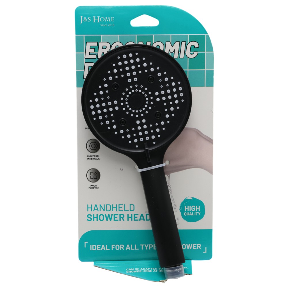 Kokë dushi, rrethore, plastike, e zezë, universale