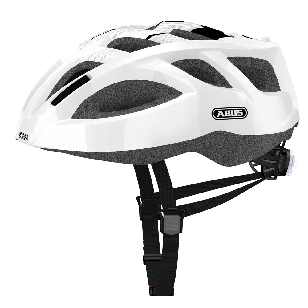 Studimet konfirmojnë vazhdimisht: Mbajtja e një helmete gjate pedalimi redukton jashtëzakonisht rrezikun e lëndimeve në kokë në një aksident me biçikletë. Prandaj, gjithnjë e më shumë pedaluesit perdorin helmetë biçikletash, jo vetëm në sport, por veçanërisht në jetën e përditshme – qoftë per pazar, çiklizëm, rrugës për në punë apo universitet. Helmetat aktuale ABUS karakterizohen nga materiale të cilësisë së lartë, proceset më të fundit të prodhimit dhe dizajni profesional. Perimetri i kokës: 54 - 58 cm Ngjyra e bardhë Ventilimi - 11 hyrje / 5 dalje ajri Sistemi i rregullimit me dritë LED të pasme Rregullimi dhe mbyllja e gjatësisë së rripit Bllokim me jastëk ne mjekër rrjetë mbrojtëse nga insektet EN 1078