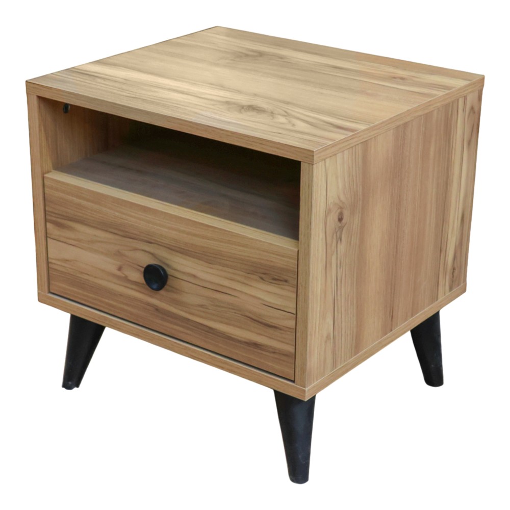Komodina “Eti” është një pjesë elegante dhe praktike e arredimit, e realizuar nga melaminë cilësore dhe vjen në një kombinim të ngjyrës kafe me të zezën. Dizajni i saj modern dhe linjat e pastra e bëjnë të përshtatshme për çdo dhomë gjumi apo hapësirë ndihmëse, duke ofruar stil dhe funksionalitet në të njëjtën kohë. Ngjyrat e errëta i japin një ndjesi sofistikimi, ndërsa materiali siguron qëndrueshmëri dhe jetëgjatësi.