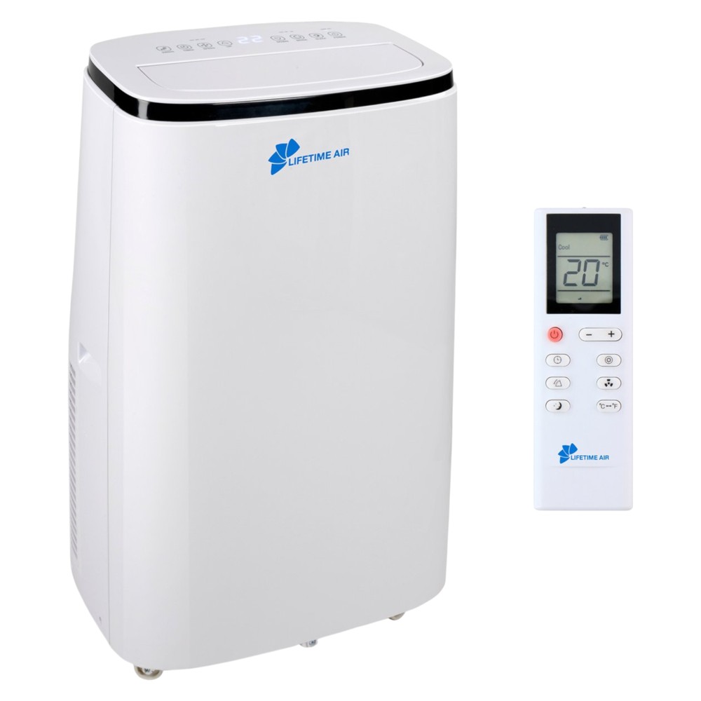 Me këtë kondicioner të lëvizshëm nga Lifetime Air, mund ta mbani shtëpinë tuaj të freskët dhe të këndshme gjatë ditëve të nxehta. Pajisja ofron ajër të kondicionuar 3-në-1, sepse funksionon si ftohës ajri, ventilator dhe tharës ajri sipas dëshirës. Rrotat në pjesën e poshtme dhe dorezat në pajisje e bëjnë të lehtë lëvizjen e kondicionerit të lëvizshëm. Vendoseni pranë një prize elektrike në një sipërfaqe të sheshtë me hapësirë të mjaftueshme (50 cm) nga të gjitha anët. Ju lutemi vini re se në modalitetin e ftohjes, nevojitet një opsion shkarkimi nga jashtë. Përfshihet një guarnicion i rregullueshëm i dritares dhe një tub shkarkimi. Ky kondicioner ka një kapacitet ftohjeje prej 14000 BTU dhe është i përshtatshëm për ftohjen e dhomave deri në një madhësi maksimale prej 96 m3 (zakonisht një sipërfaqe mbi 38 m2). Niveli i izolimit të një dhome ndikon gjithashtu në kapacitetin e ftohjes së kondicionerit. Mund ta imagjinoni se një papafingo e izoluar dobët në jug kërkon më shumë nga një kondicioner sesa një dhomë e izoluar mirë në veri.