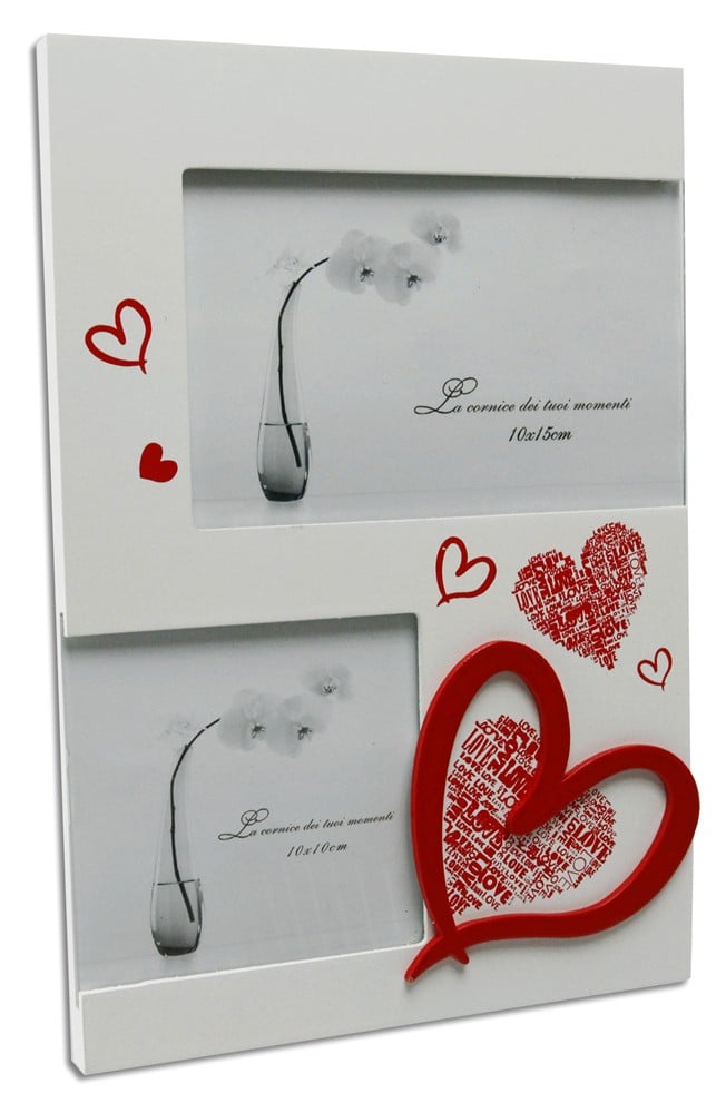 Po vlerësoni:Kornize druri, vendosen 2 foto 10x15cm. Ngjyre bardhe me zemra te kuqe