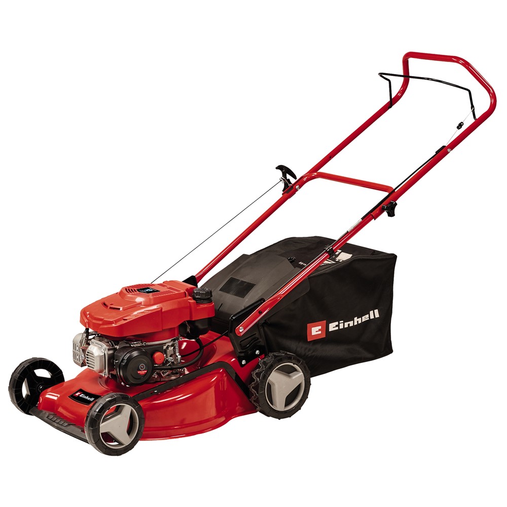 Po vlerësoni:Korrëse bari me benzinë, Einhell, GC-PM 46/3, 4 kohësh, 132 cm³, 46 cm, 25-80 mm, kosh 65 L, 1200 m², me rrota aktive