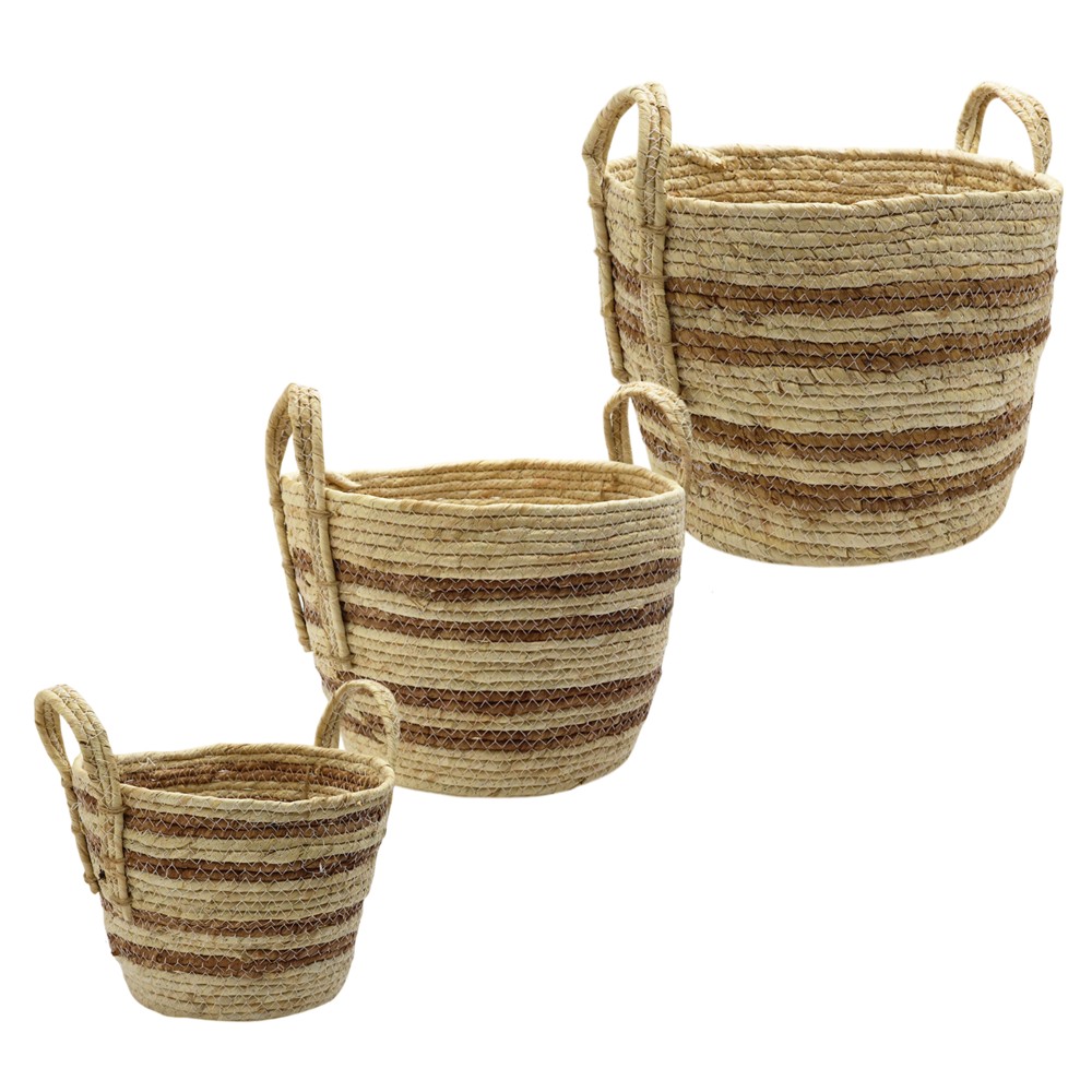 Ky set i shportave të magazinimit ofron një zgjidhje të përshtatshme dhe të stilizuar dhe organizuar ambientet e ndryshme në shtëpi, duke shtuar një prekje tërheqëse dhe të organizuar në hapësirën tuaj të banimit. Shportat janë bërë prej kashte, një material i qëndrueshëm dhe i lehtë për përdorim. Shportat janë ideale për të magazinuar dhe organizuar çdo gjë, nga veshjet e vogla, aksesorët, ose gjëra të tjera shtëpiake