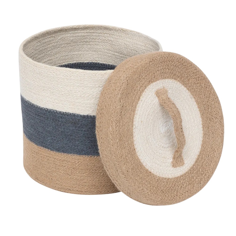 Zbuloni koshin elegant Océane të rrumbullakët organizues me kapak jute, i cili është jo vetëm funksional, por edhe elegant. Ky kosh ofron zgjidhjen perfekte për ruajtjen e organizuar në çdo dhomë. Ideale për ruajtjen e sendeve të përditshme, lodrave ose tekstileve. Forma e rrumbullakët dhe kapaku natyral nga jute përzihen në mënyrë harmonike në çdo ambient.
