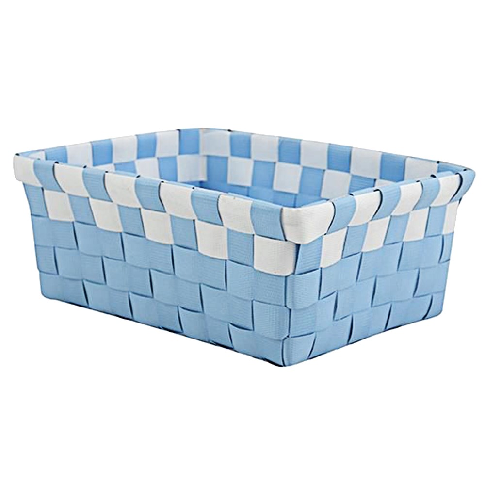 Po vlerësoni:Kosh magazinimi, thupër, blu/e bardhë, 19x14xH8 cm