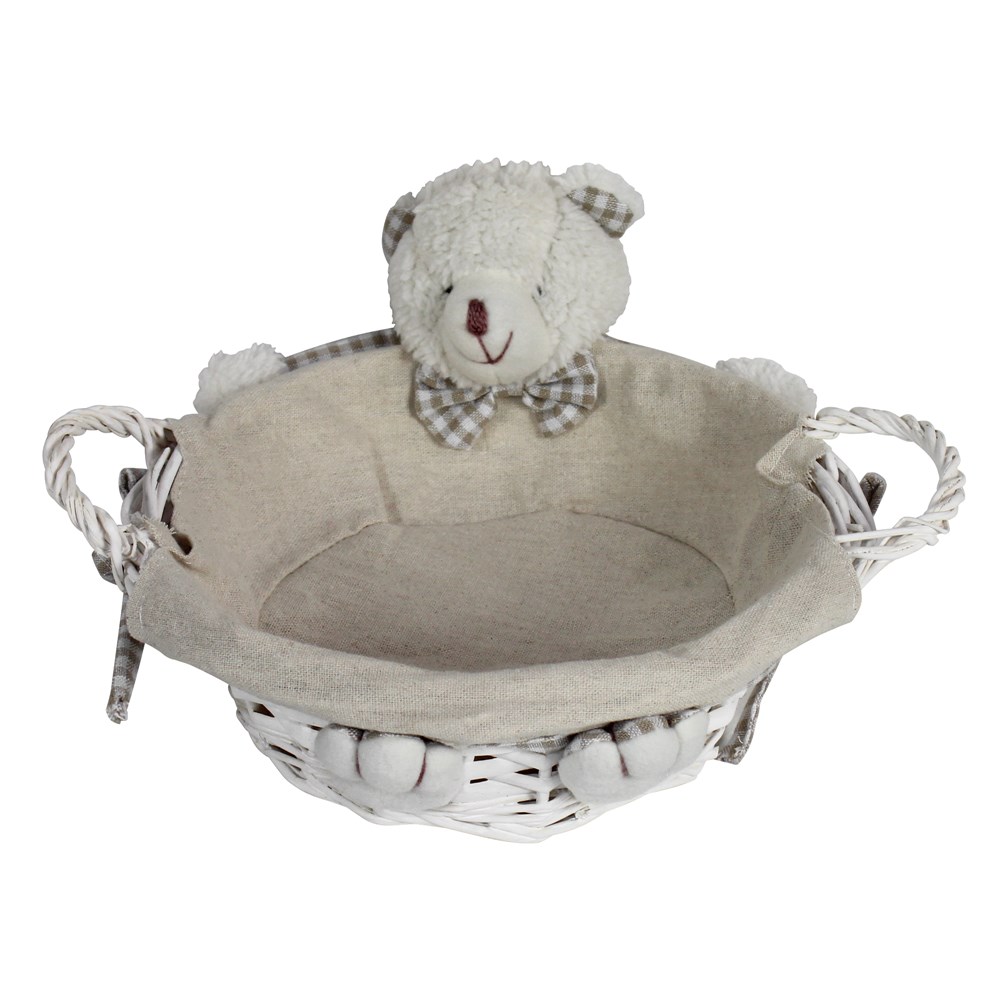 Po vlerësoni:Kosh magazinimi, thupër dhe tekstil, kremi, Ø24 xH8-13 cm