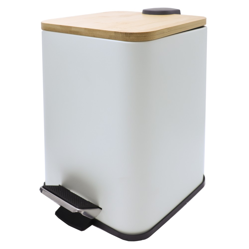 Me një kapacitet prej 5 litrash, ky kosh mbeturinash është shumë kompakt dhe për këtë arsye është ideal për hapësira të vogla si tualete, kuzhina dhe zyra. Pavarësisht nga kapaciteti i tij i vogël, koshi është shumë elegant dhe duket shumë luksoz për shkak të ngjyrës së bardhë dhe kapakut prej bambuje. Ngjyra është perfekte dhe mund të kombinohet me ngjyra të errëta dhe të lehta.