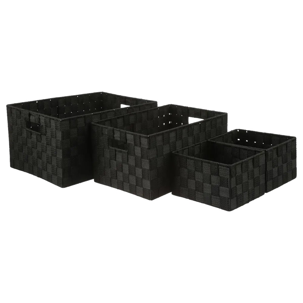 Po vlerësoni:Kosh me thurje, Lise, set 4 copë, polipropilen/metal, e zezë, S-20x15xH12 cm; M-34x24xH18 cm; L-38x28xH20 cm