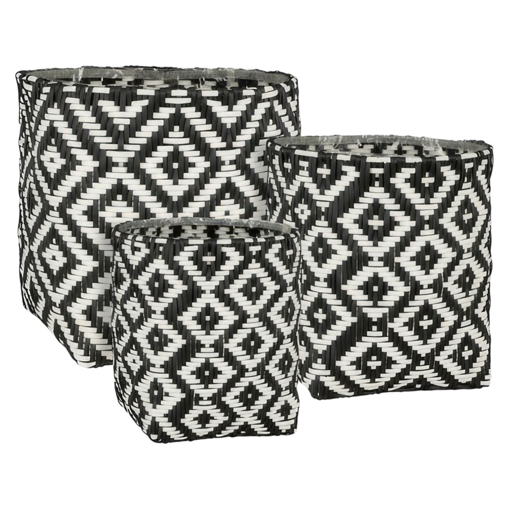 Po vlerësoni:Kosh për lule, Merlijn, set 3 copë, plastike, e bardhë/e zezë, Ø27xH30 cm; Ø30xH32 cm; Ø34xH35 cm