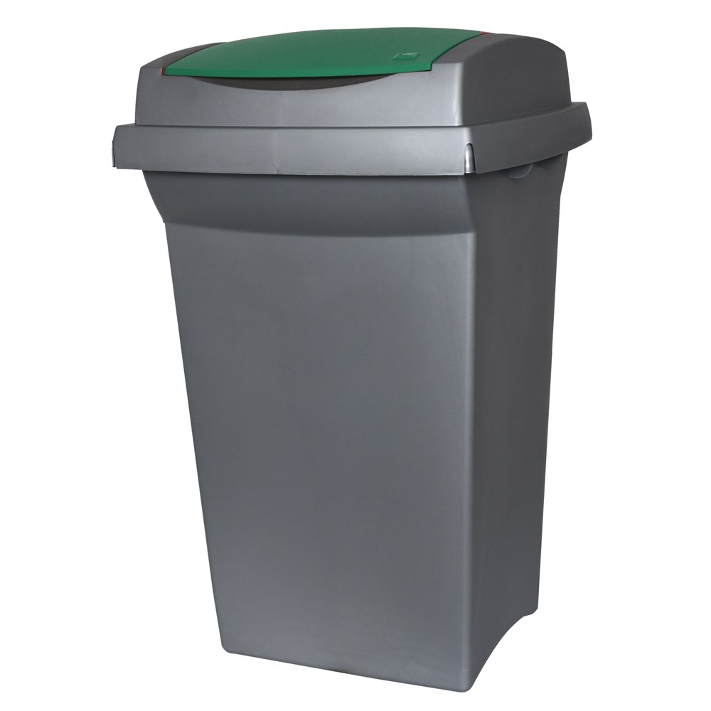 Po vlerësoni:Kosh plehrash, 50 lt, plastike, gri, kapak jeshile, 43x39xH68 cm