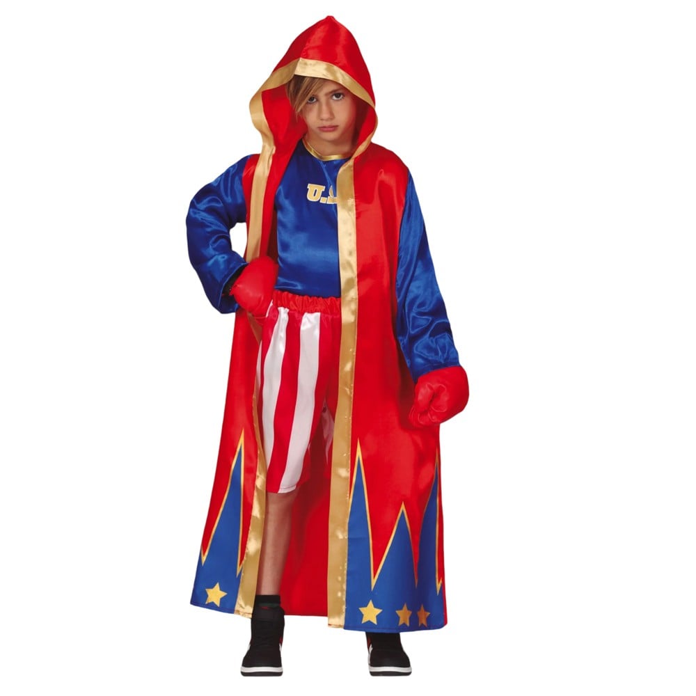 Kostum Boxer për fëmijë, prej materiali poliestre, në ngjyrë mikse. Materiali përbërës është i butë në prekje dhe nuk shkakton irritim në lëkurë. Ky produkt është i përshtatshëm për përdorim nga fëmijë të moshës 7-9 vjec me gjatësi 125 cm deri në 135 cm, bust 67-70 cm, beli 59-60 cm, ijet 67-72 cm.