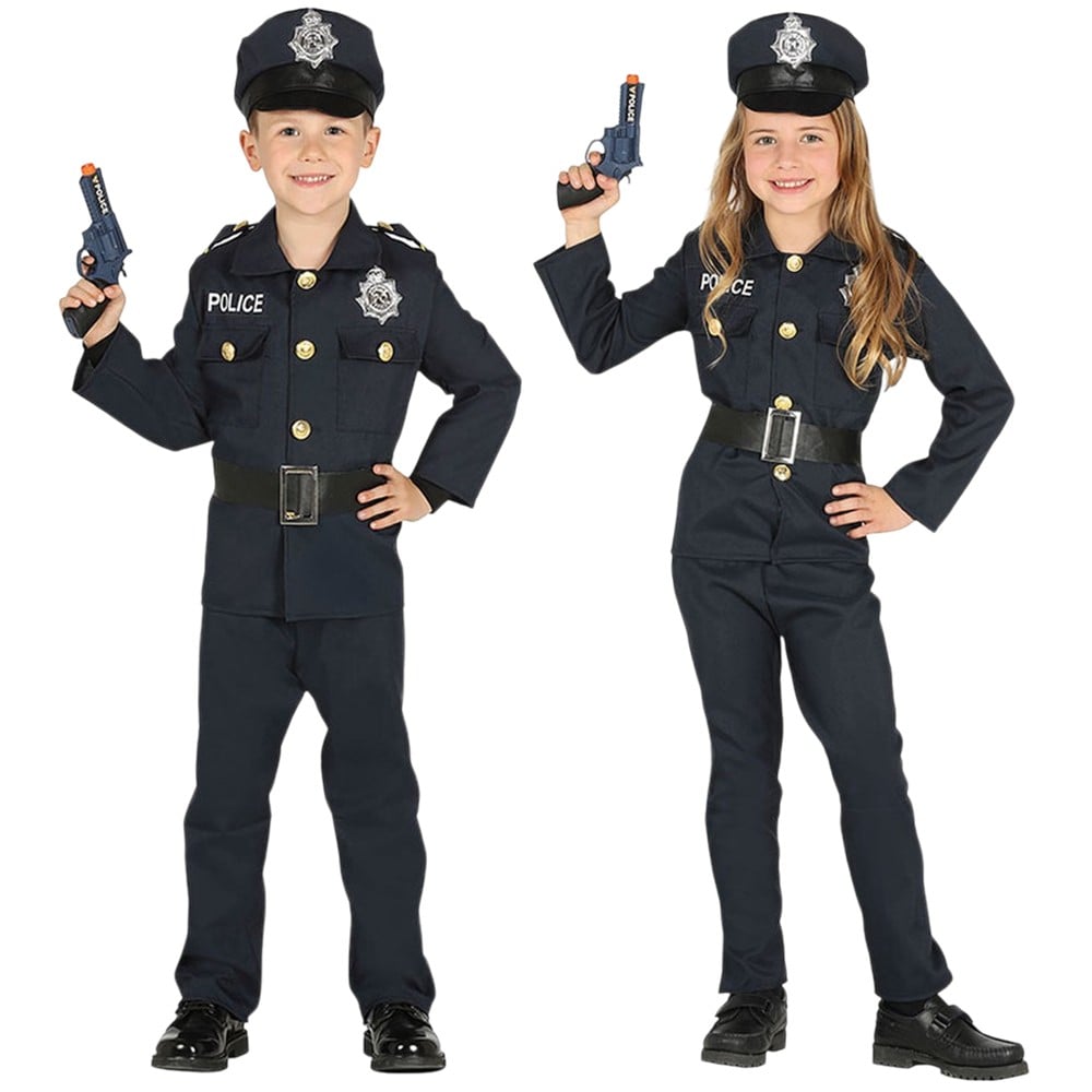 Kostum Polic për fëmijë, prej materiali poliestre, në ngjyrë mikse. Materiali përbërës është i butë në prekje dhe nuk shkakton irritim në lëkurë. Ky produkt është i përshtatshëm për përdorim nga fëmijë të moshës 7-9 vjec me gjatësi 125 cm deri në 135 cm, bust 67-70 cm, beli 59-60 cm, ijet 67-72 cm.