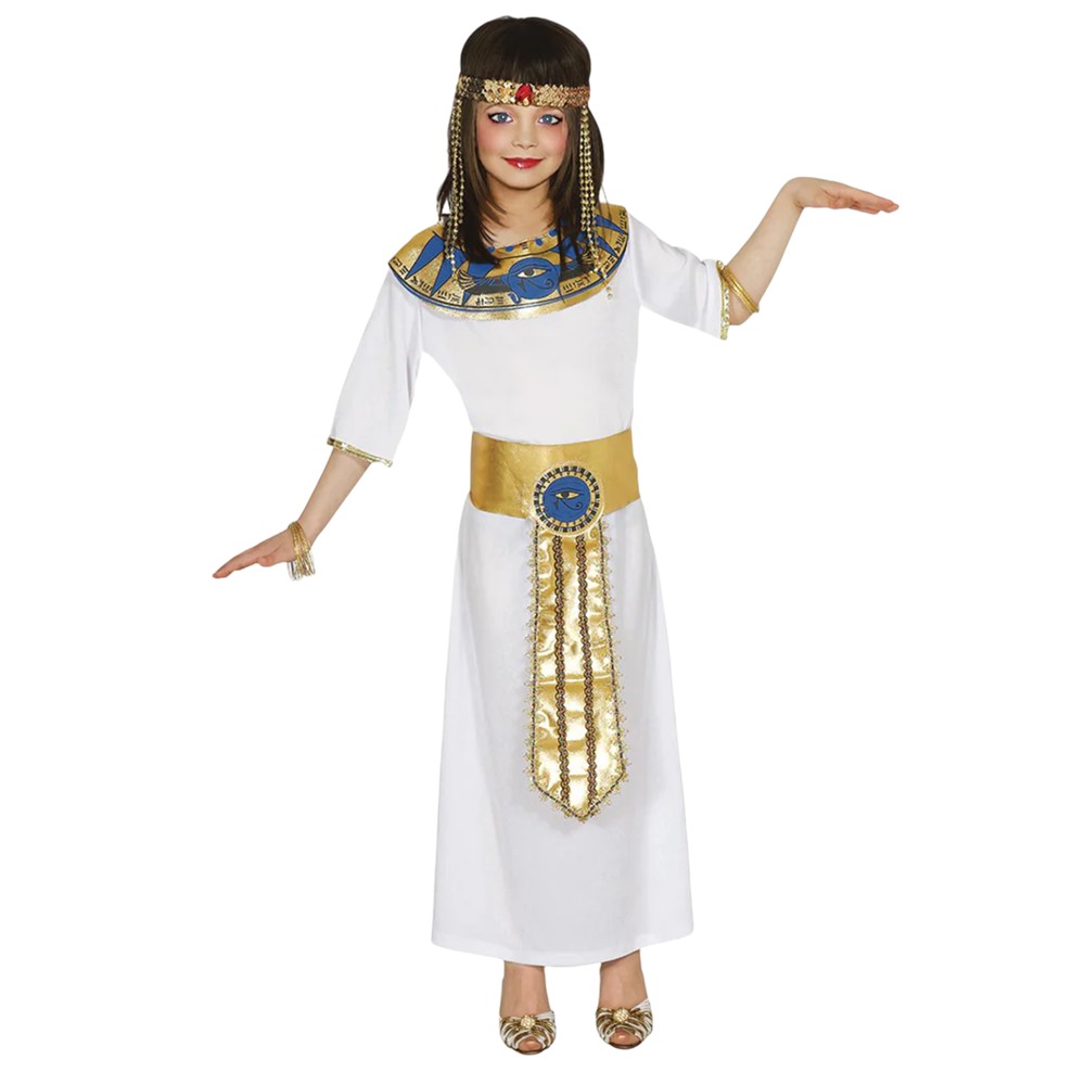 Kostum Egyptian për fëmijë, prej materiali poliestre, në ngjyrë mikse. Materiali përbërës është i butë në prekje dhe nuk shkakton irritim në lëkurë. Ky produkt është i përshtatshëm për përdorim nga fëmijë të moshës 10-12 vjec me gjatësi 142 cm deri në 148 cm, bust 73-76 cm, beli 64-65 cm, ijet 75-78 cm.