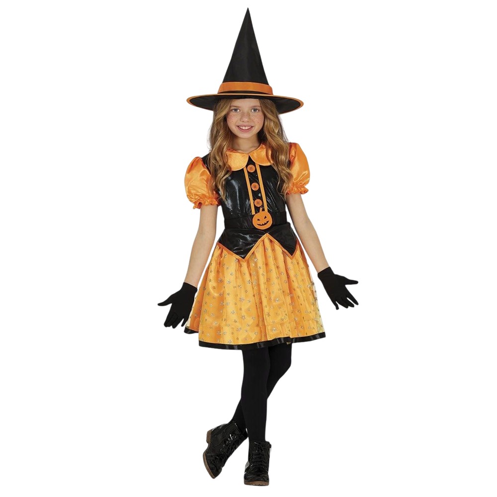 Kostum Glitter witch për fëmijë, prej materiali poliestre, në ngjyrë mikse. Materiali përbërës është i butë në prekje dhe nuk shkakton irritim në lëkurë. Ky produkt është i përshtatshëm për përdorim nga fëmijë të moshës 7-9 vjec me gjatësi 125 cm deri në 135 cm, bust 67-70 cm, beli 59-60 cm, ijet 67-72 cm.