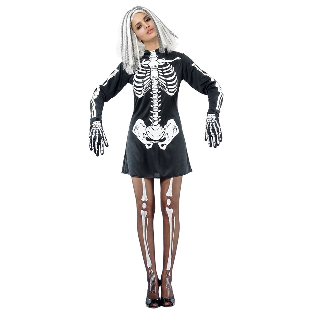 Krijoni kostumin tuaj të skeletit duke përdorur këtë fustan mini skelet me mëngë të gjata dhe me dekor kocka të shtypura të eshtrave në bustin e përparme. Qëndroni besnikë kesaj veshjeje deri në vdekje.