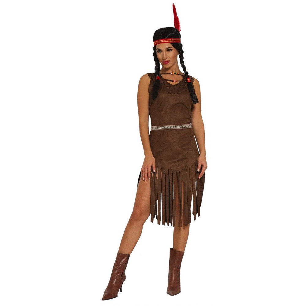 Kostume për femra, prej materiali poliestër, në ngjyre kafe. Veshja perbeeht nga: 1 fustan, 1 shirit koke, 1 rrip. Përmasat: Perimetri i kraharorit: 93 deri 96 cm, Brezi perimetri: 73 deri në 75 cm, Perimetri i ijëve: 99.5 deri në 102 cm, Madhësia: 38/40.