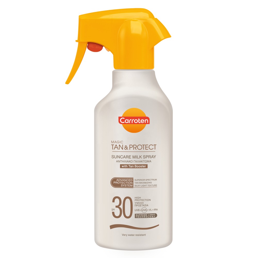 Krem plazhi, spray, Bronzi me Mbrojtje të Padukshme SPF30, 270 ml, ne formën e sprejit, e formuluar me formule te butë. Me një teksturë të lehtë, jo të yndyrshme, hidratuese, për hidratim të thellë, përthithje të shpejtë dhe lëkurë unike të butë. I testuar dermatologjikisht/Rezistent ndaj ujit. Aplikojeni në mënyrë të barabartë një sasi të bollshme në të gjithë trupin, para ekspozimit në diell dhe riaplikoni shpesh, veçanërisht pas notit, fshirjes me peshqir dhe djersitjes.