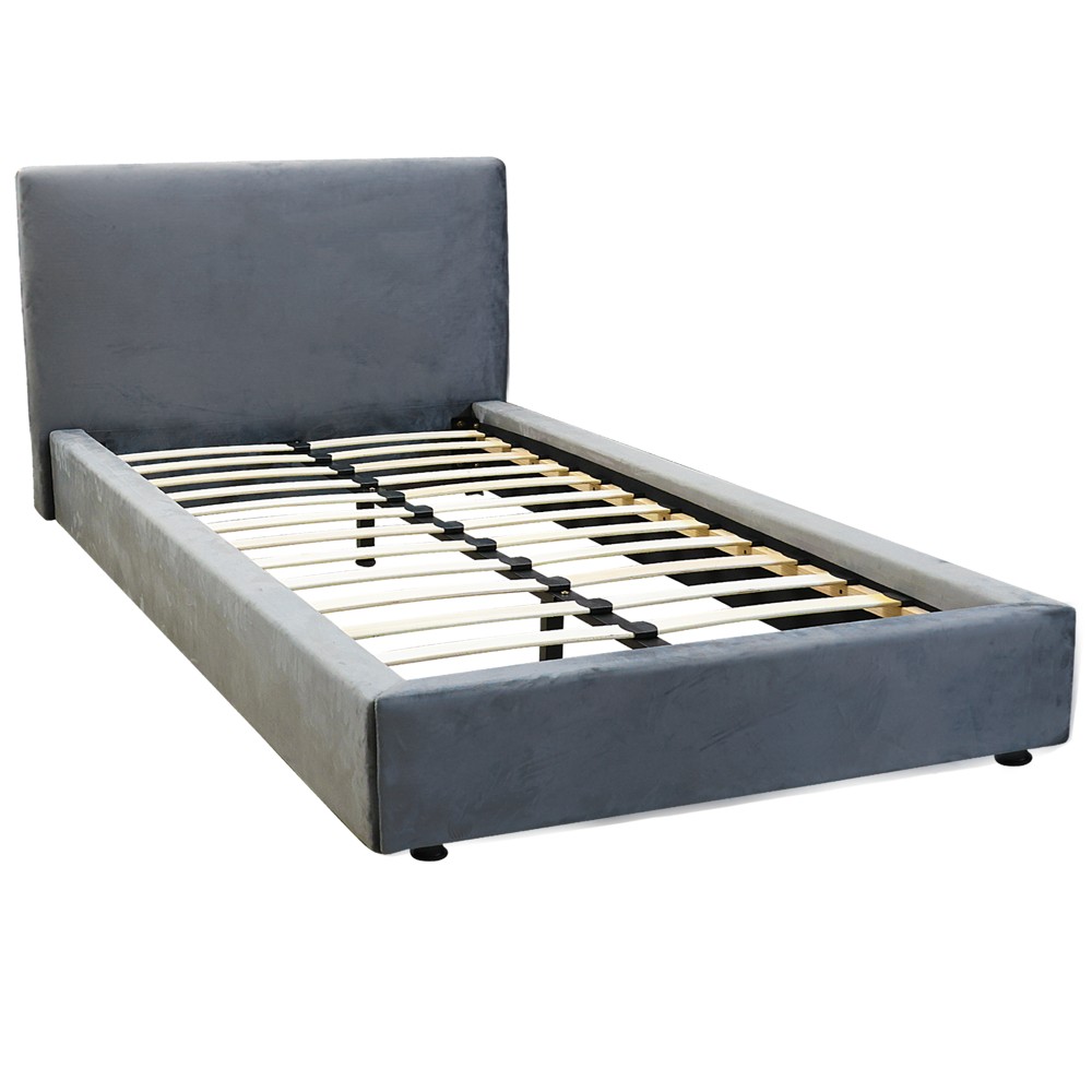 Krevat dopjo, tapiceri velevet, këmbë plastike, gri e ngrohtë, 180x200 cm