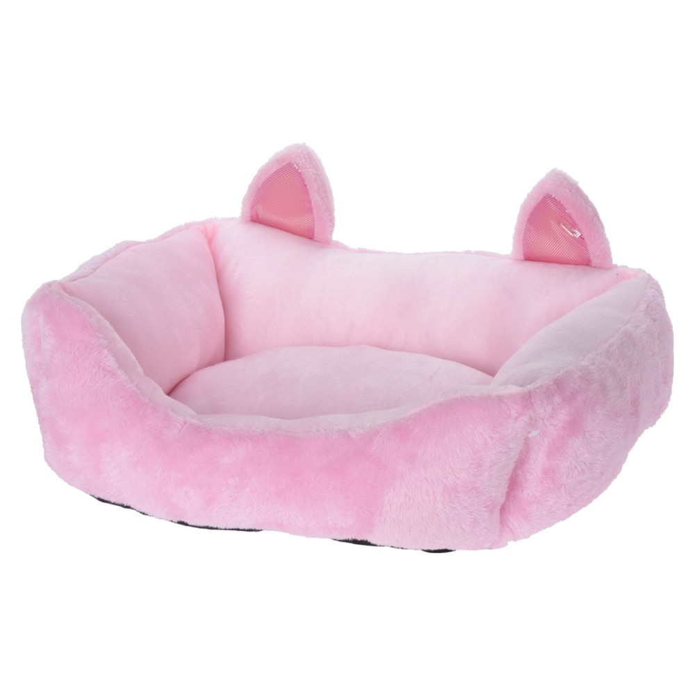 Një shtrat i përshtatshëm për një qen të vogël me madhësia 56 X46 X22 cm. Shtrati si fole jep një ndjenjë sigurie,Skajet e buta e bëjnë të këndshme për kafshen te pushoj dhe të vëzhgoj mjedisin përreth. Ka ngjyrë rozë, me veshë si dekor!
