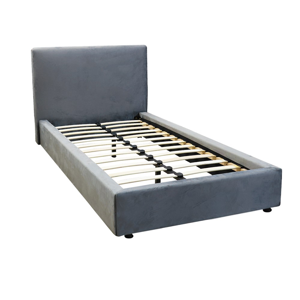 Krevat tek, tapiceri tekstili, këmbë metalike, gri e ngrohtë, 90x200 cm