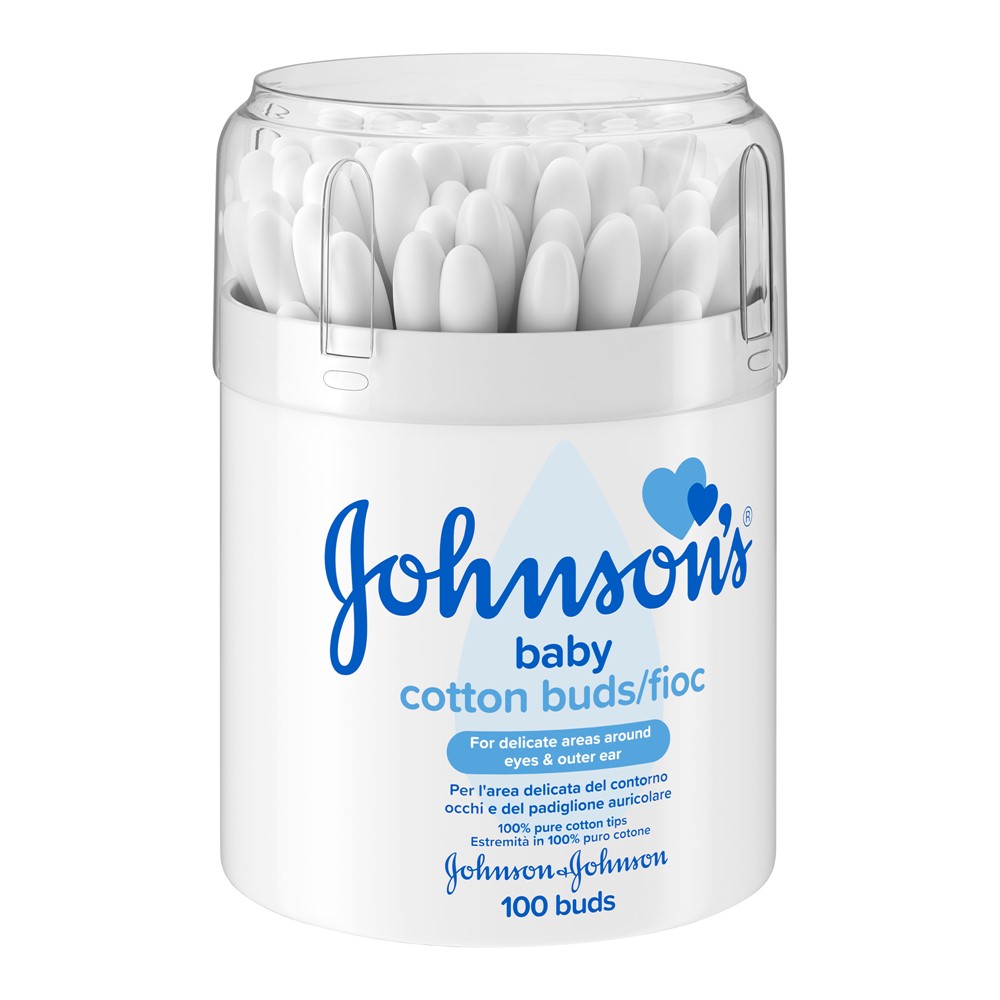 Kunja për veshët, Johnson's, pambuk dhe plastikë, 9x9x9.2 cm, e kaltër, 100 copë