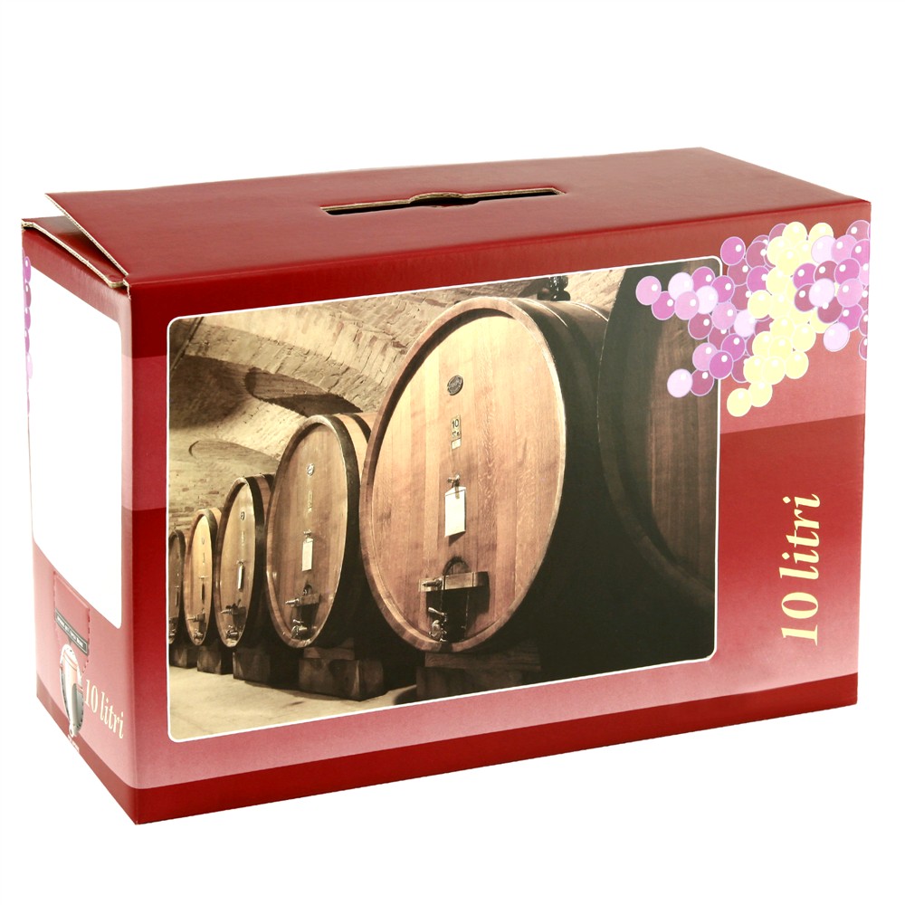 Kuti ambalazhimi kartoni 10 litra për qesen e aluminit të verës. Përdoret me qesen e aluminit, të cilat, pasi mbushen me verë, vendosen brenda kutisë së kartonit për mbrojtjen ndaj goditjeve.
