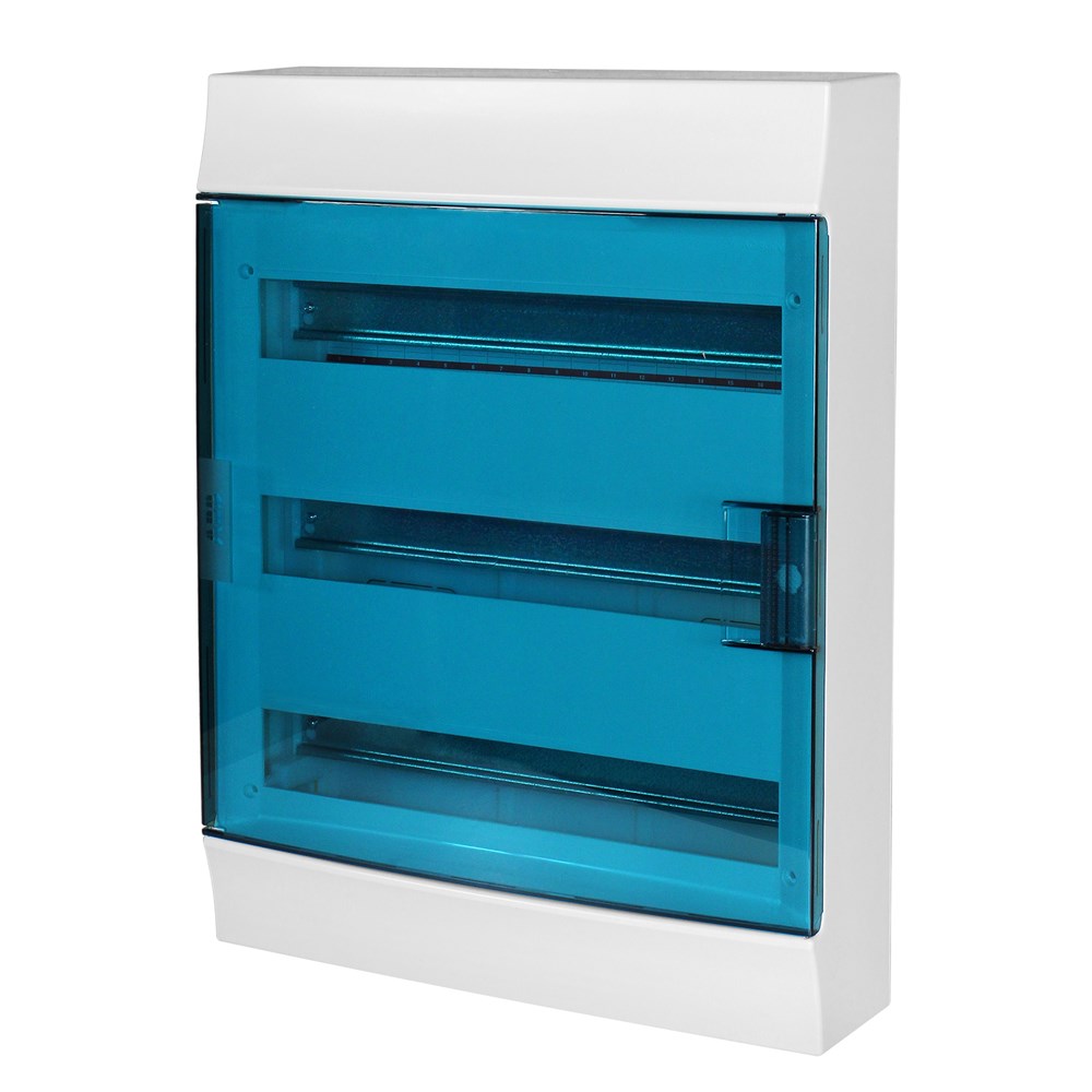 Kuti automati jashtë murit, IP41 54M, gri. Kutitë e automatëve 54 modulare jashtë murit gjejnë përdorim të gjerë në ambiente civile dhe industriale. Përveç aspektit funksional (izolimi dhe grupimi) krijohet mundësia që specialisti ose përdoruesi familjar të ketë mundësi të ndërhyjë sipas nevojës në rrjetin elektrik. Kutia është e pajisur me një kapak transparent duke krijuar mundësinë e monitorimit dhe ka dizenjo elegante.