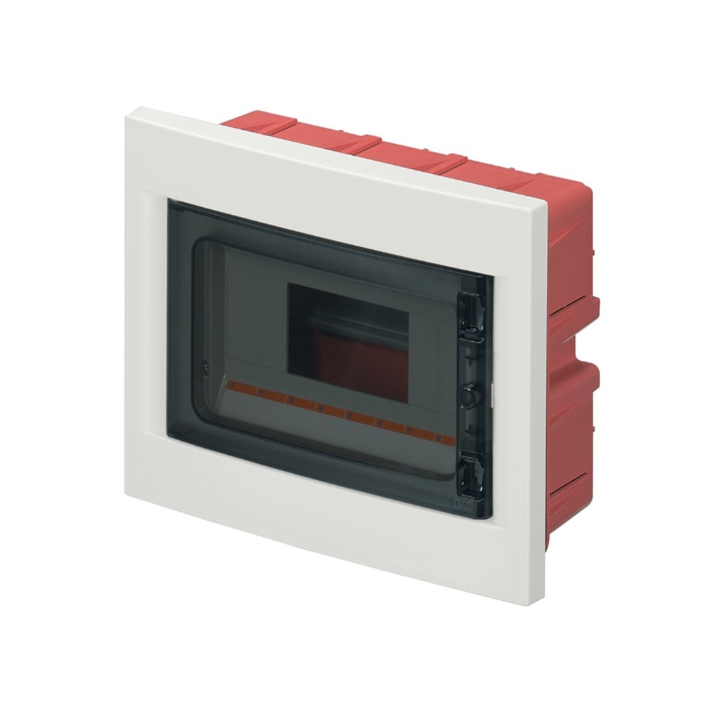 Kuti automati brenda murit, IP40, 8M, e bardhe. Kutitë e automatëve 8 modulare brenda murit gjejnë përdorim të gjerë në ambiente civile dhe industriale. Përveç aspektit funksional (izolimi dhe grupimi) krijohet mundësia që specialisti ose përdoruesi familjar të ketë mundësi të ndërhyjë sipas nevojës në rrjetin elektrik. Kutia është e pajisur me një kapak transparent duke krijuar mundësinë e monitorimit dhe ka dizenjo elegante.