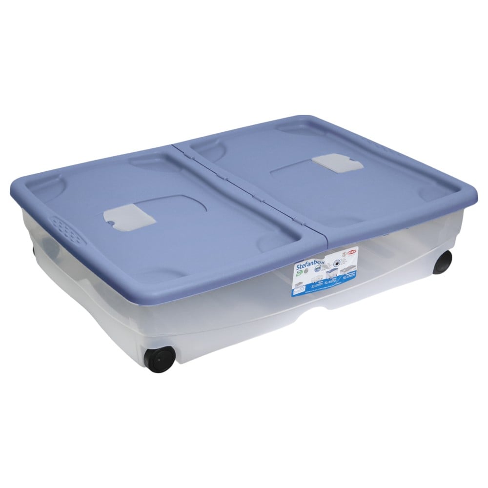 Kuti magazinimi me rrota, plastike, transparente/ blu, 64 lt, 80x60xH18 cm