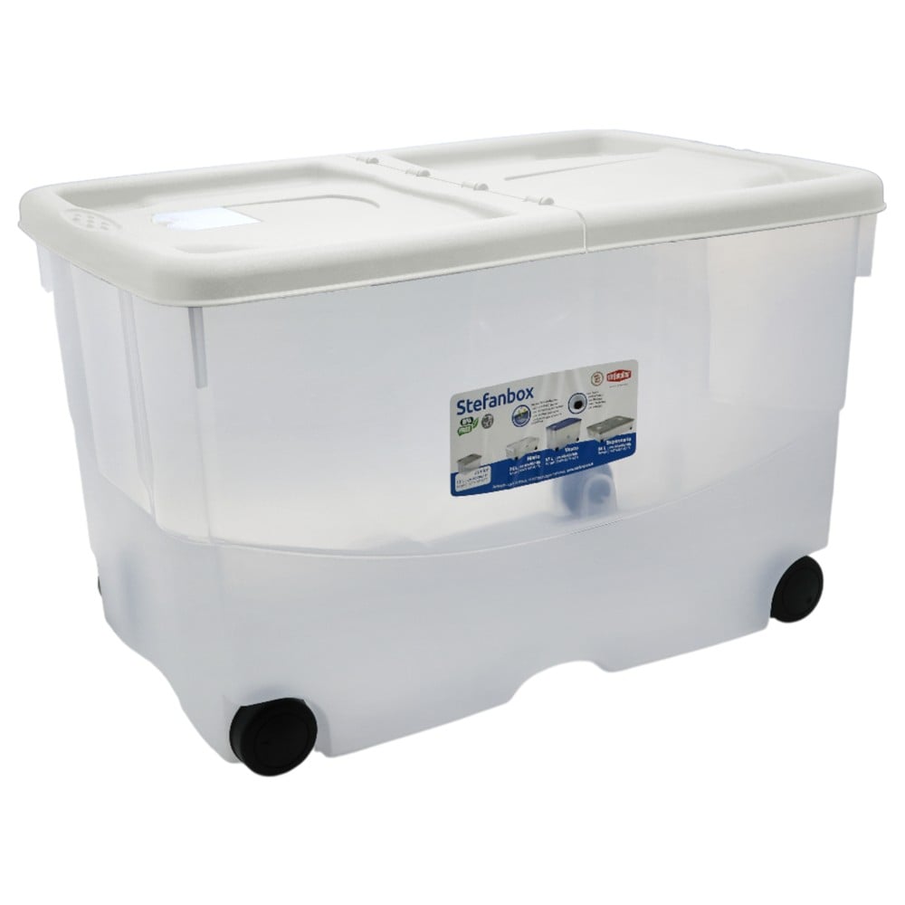 Organizoni hapësirën tuaj me efikasitet dhe lehtësi me këtë kuti magazinimi funksionale dhe praktike. Me kapacitet të bollshëm prej 57 litrash, kjo kuti është ideale për ruajtjen e rrobave, lodrave, pajisjeve të ndryshme shtëpiake apo materialeve të zyrës. E prodhuar nga plastikë cilësore dhe rezistente, ajo siguron mbrojtje të mirë ndaj pluhurit, lagështirës dhe dëmtimeve të përditshme. Ngjyra transparente ju lejon të shihni përmbajtjen pa pasur nevojë ta hapni, duke kursyer kohë dhe përpjekje. Me përmasa praktike prej 60x40x36 cm, dhe të pajisur me rrota të integruara, kjo kuti lëviz lehtësisht edhe kur është e mbushur plot. Kapaku i fortë mbyllet në mënyrë të sigurt, duke ruajtur përmbajtjen dhe duke e bërë të përshtatshme për vendosje në raft, nën shtrat apo në ambiente magazinimi. Një zgjidhje ideale për ruajtje praktike dhe të rregullt në çdo shtëpi, zyrë apo depo.