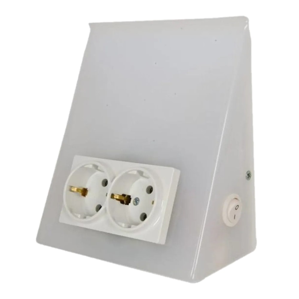 Kuti me dy priza shuko dhe ndricim te bardhe te ftohte, 17x7.5x14 cm, metalike, gri