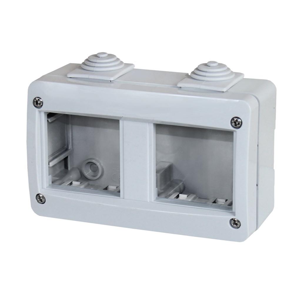 Me një dizajn elegant dhe njëkohësisht shumë funksional kjo kuti 4 modulare është gjerësisht e përdorur për përdorim civil dhe industrial. Përvec aspektit funksional(izolimi dhe grupimi)krijohet mundësia që specialisti ose përdoruesi familjarë të ketë mundësi të ndërhyjë sipas nevojës në rrjetin elektrik si dhe duke qenë e pajisur me një kapak transparent ajo ofron mundësinë e monitorimit të funksionimit të pajisjeve.Ato janë të përshtatura që të fiksohen në cdo lloj sipërfaqe muri dhe të jenë hermetike dhe rezistente ndaj agjentëve atmosferikë.