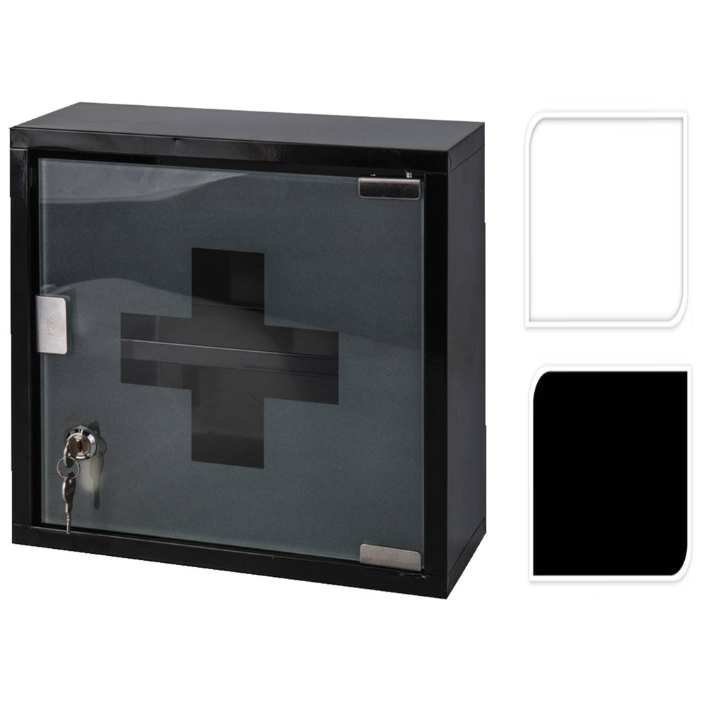 Kuti ndihma e shpejtë, inoks dhe xham, e bardhë/zezë, 30x30xH12 cm