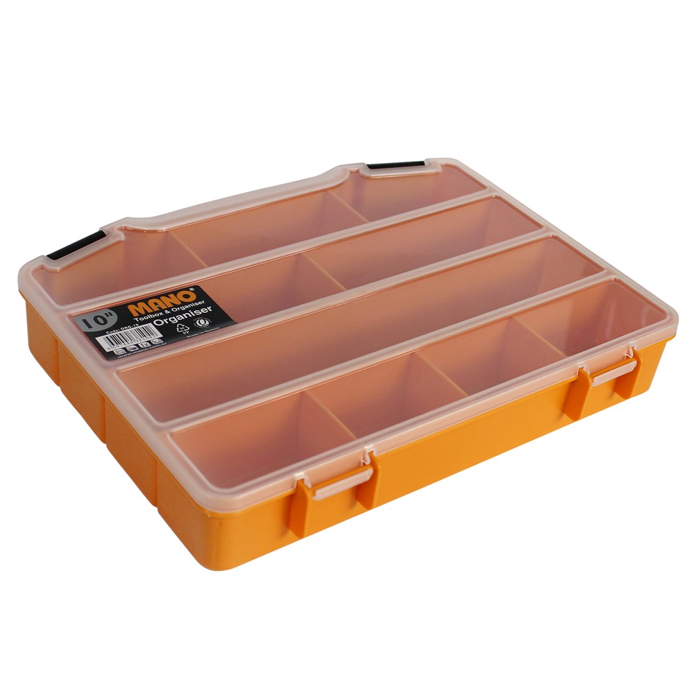 Kuti e veglave organizuese prej plastike transparente me 10 ndarje, me përmasë 251x200x44 mm është e dizenjuar për t'u përdorur nga profesionistët. Kjo kuti ka një konstrukt të fortë dhe rezistent. Me mundësi organizimi të aksesorëve të veglave dhe ndarje sipas madhësive të tyre. Duke bërë të mundur sistemimin e veglave në një hapësirë shumë të vogël.