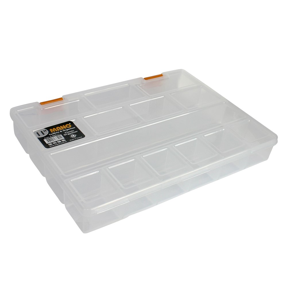 Kuti e veglave organizuese prej plastike transparente me 11 ndarje, me përmasë 276x203x42 mm është e dizenjuar për t'u përdorur nga profesionistët. Kjo kuti ka një konstrukt të fortë dhe rezistent. Me mundësi organizimi të aksesorëve të veglave dhe ndarje sipas madhësive të tyre. Duke bërë të mundur sistemimin e veglave në një hapësirë shumë të vogël.