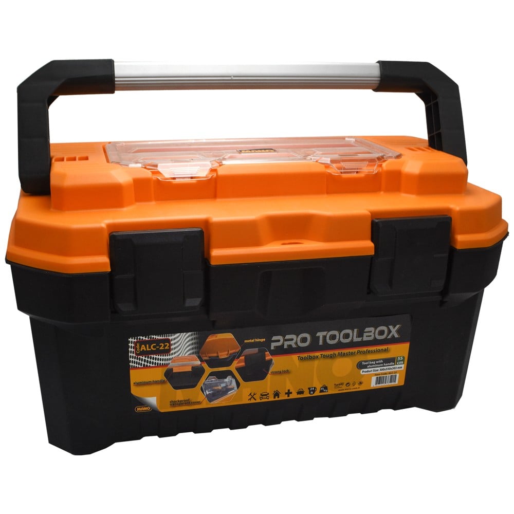 Ideale per organizimin dhe transportimin e veglave te punes. Struktura prej plastike te forte dhe doreza prej Alumini, bejne te pamundur demtimin e kesaj kutie nga perditshmeria. Kapeset me plastike te trashe, sigurojne qendrueshmeri ne mbyllje.