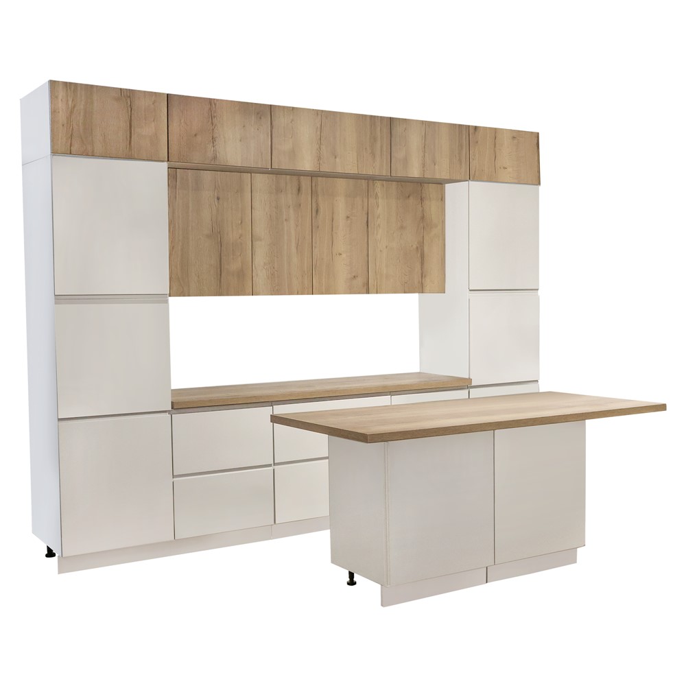 Kuzhinë, Lamja, strukturë melamine, mdf, e bardhë, 320 cm; ishull 180 cm