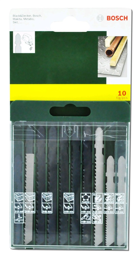 Lama sharre sege druri dhe metali 10 pc. Seti perfshin 2 lama sharre per prerej metali nga 1-3mm me gjatesi 67mm. 2 lama standarte per te prere te gjitha llojet e drurit nga 2-15mm me gjatesi 56mm. 2 lama per te prere ne dru te bute nga 5-50mm me gjatesi 74mm. 2 lama druri per prerj te paster na 3-30m me gjatesi 74mm. 4 lama per te prere ne dru te bute nga 4-50mm me gjatesi 74mm