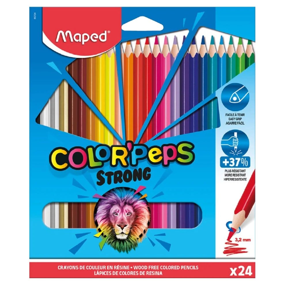 Lapsa me ngjyra Maped "Peps Strong", e cila përmban 24 ngjyra të ndryshme. Këto lapsa janë të përshtatshme për përdorim në shkollë, në shtëpi ose për aktivitete artistike.