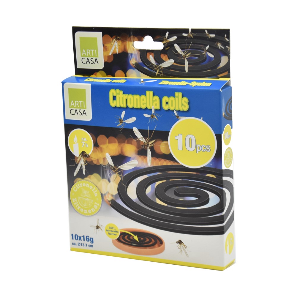 Spirale aromatizuese për largimin e mushkonjave, me diametër prej 13.7 cm, me një formulë të pasuruar me vaj limoni dhe me një kohëzgjatje të djegies deri në 7 orë. Përdoret në ambiente të jashtme, si kopshte, ballkone, tarraca apo edhe në kamping, për largimin e insekteve si mushkonjat dhe grerëzat. Rekomandohet të mos përdoren në ambiente të mbyllura. Paketimi përmban 10 copë, me masë prej 16 g secila.