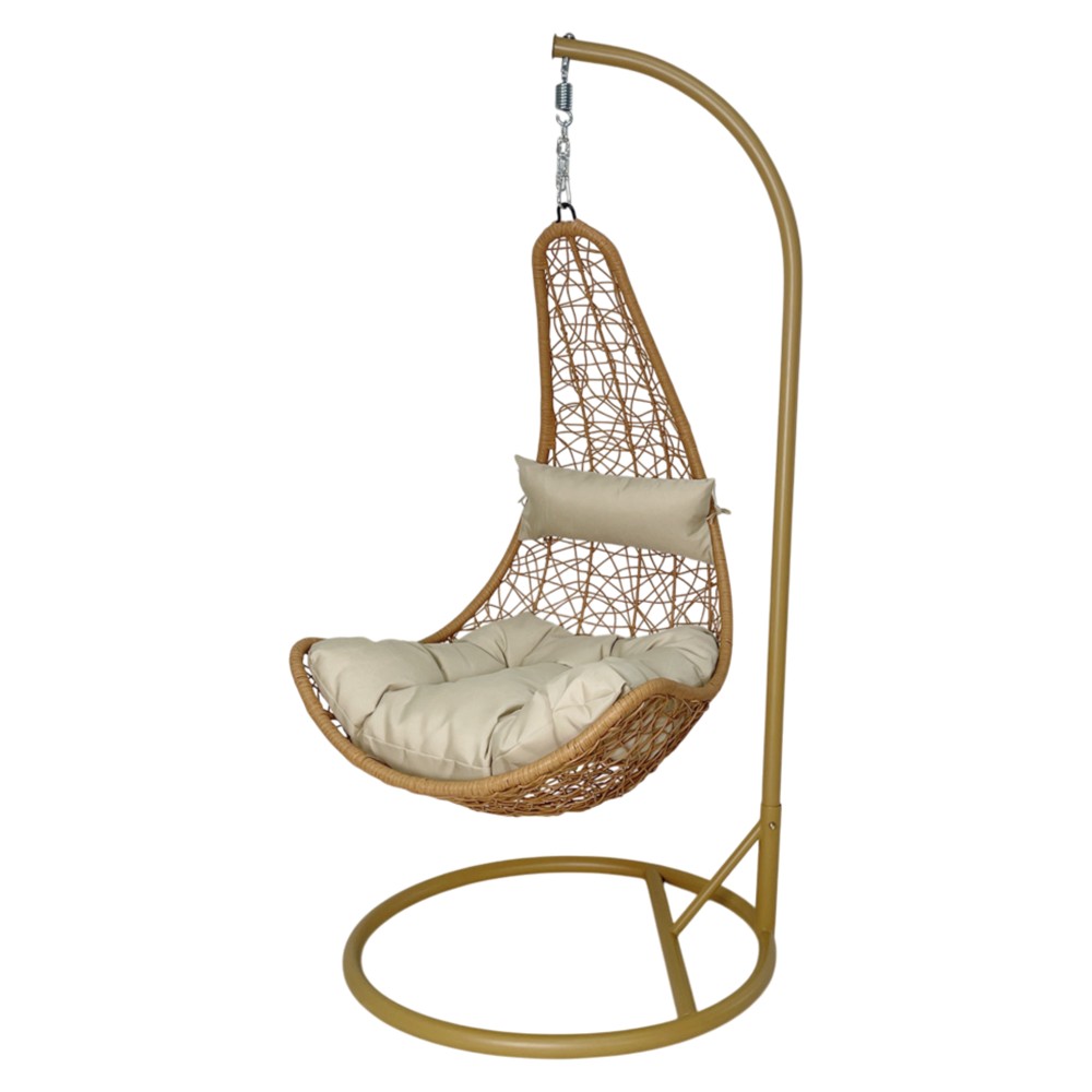 Lëkundëse, metal/ratan PE, strukture bezhe, shilte bezhe, kosh L126xW83xD70 cm , H200 cm