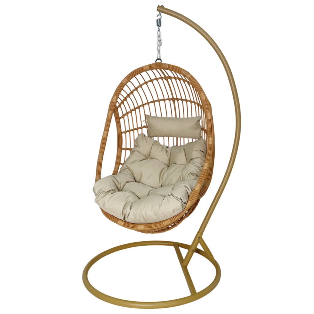Lëkundëse, metal/ratan PE, strukture bezhe, shilte bezhe, kosh L126xW90xD70 cm , H200 cm
