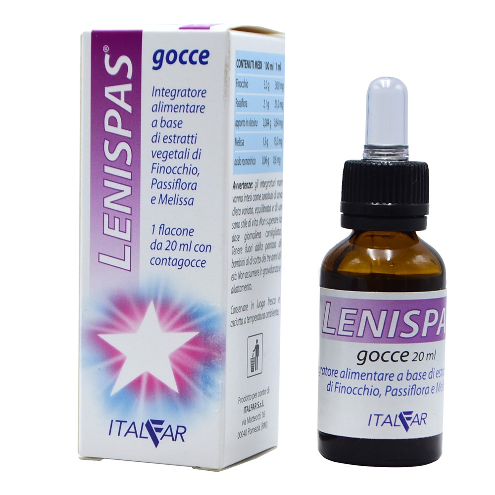 Lenispas pika, eshte baze ushqimore me ekstraktet e finokut, Pasiflores Dhe Melises. Perdoret per dhimbjet e barkut te bebeve. Menyra e perdorimit: 0-2 vjec 12 pika 1-2 here ne dite, femijet 2-5 vjec 12 pika 2 here ne dite