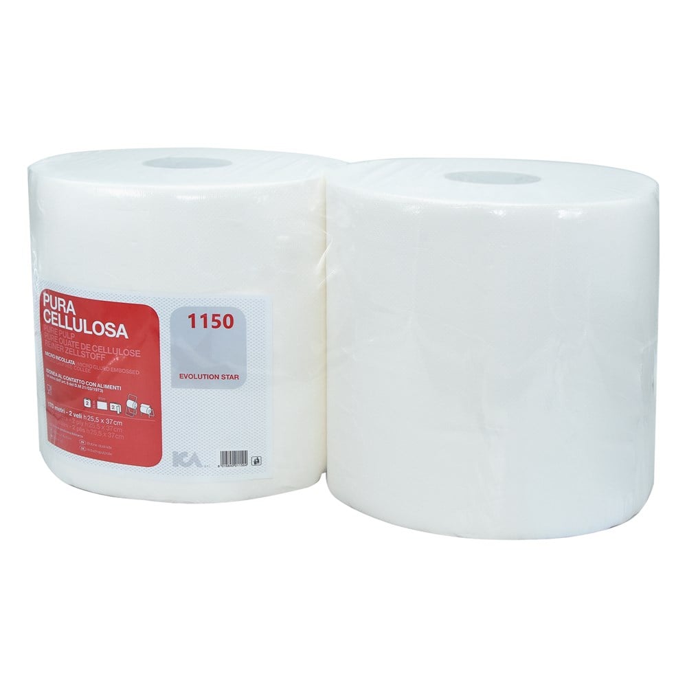 Rulon industrial 100% celulozë, i bërë nga 2 fletë - 22 gsm letër. Ky produkt është jashtëzakonisht absorbues dhe i fortë falë mikro-ngjitjes