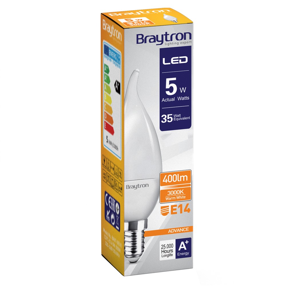 Llambë LED BRAYTRON, C37T, E14, 5W, 3000K, 400lm, 220V-240V AC