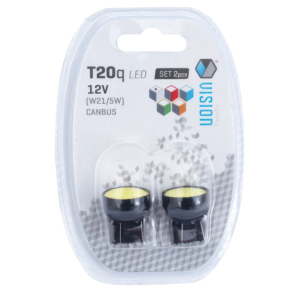 Të dhënat teknike: Emërtimi: W21/5W T20q Burimi i dritës: 1x COB LED Fluksi i ndriçimit: 110lm Ngjyra e dritës: e bardhë (6000K) Tensioni: 12 V Konsumi i energjisë: 1.2 W Këndi i rrezes: 180 gradë Sasia në paketim: 2 copë Përdoret në dritat e parkimit, dritat e pozicionit dhe STOP-it.