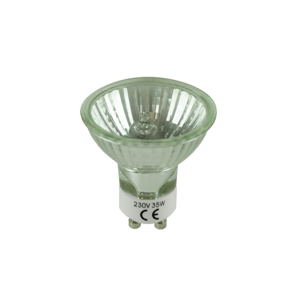 Llambat halogjene mund të përdoren për të ndricuar cdo ambjent brenda shtëpisë,restoranteve, hoteleve etj... Këto tipe llambash janë të vecanta për renderizimin maksimal të ngjyrave dhe për fluksin maksimal të dritës. Një tjetër detaj që i bën këto llamba gjerësishtë të përdorshme është mundësia e përdorimit të tyre me reostat. Kjo llambë halogjene përdoret në tension 230V,ka një fuqi 35W,portollambë GU10.