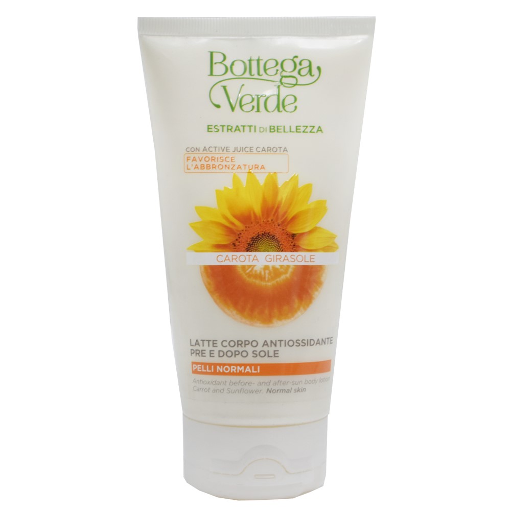 Locion antioksidues për lëkurën, para dhe pas ekspozimit në diell, me një formulë hipoalergjike të testuar dermatologjikisht, me veti ushqyese për lëkurën. Formula është e pasuruar me ekstrakt karrote dhe vaj luledielli, me përmbajtje të lartë të vitaminës A, E, F dhe karotenit, që eliminon stresin oksidativ duke parandaluar plakjen e parakohshme të lëkurës. Kur përdoret disa javë para ekspozimit në diell, ndihmon për të mbajtur një nxirje të njëtrajtshme; aplikuar pas ekspozimit në diell, zgjat nxirjen e lëkurës, si edhe hidraton dhe zbut lëkurën në të njëjtën kohë.