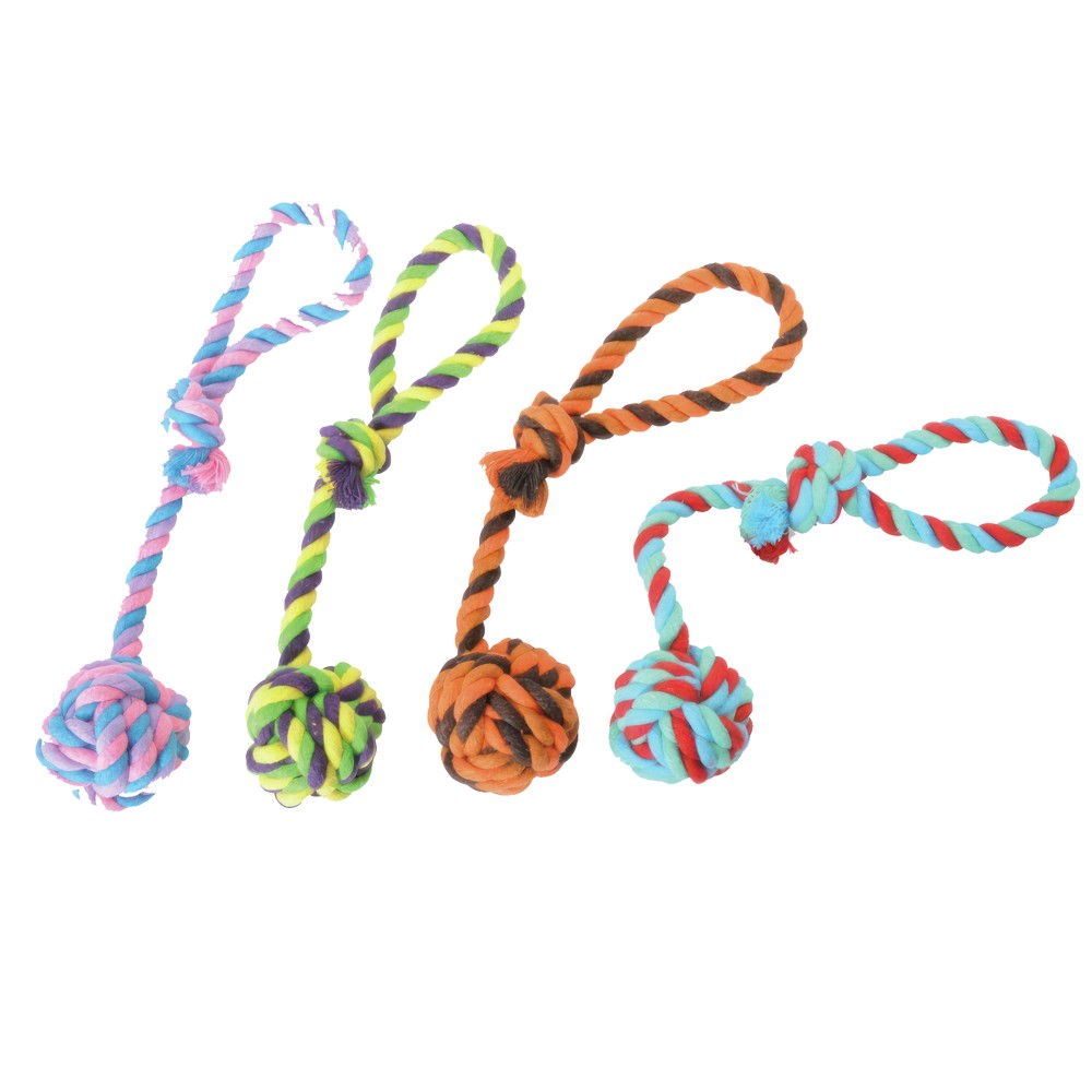 Këto lodra edukative shumëngjyrëshe do të kënaqin mikun tuaj me katër këmbë, i cili mund të argëtohet me këtë kockë pambuku me dorezë dhe top pambuku në fund. E disponueshme ne ngjyra te ndryshme.